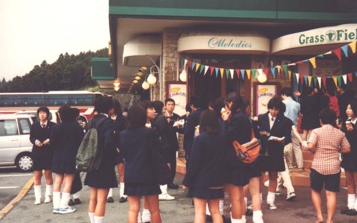Apropos Verbeugungen, nun muß ich doch wieder etwas abschweifen, also Höflichkeit und Rücksichtnahme scheint bei den Japanern eine Tugend zu sein die sie schon von klein auf beherrschen. Es ist egal wohin man kommt, ob es nun eine Gastfamilie ist, wie in unserem Fall oder beim betreten eines Restaurant oder in einem Kaufhaus, ja sogar an der Tankstelle ( ah, ja, zu diesem Punkt muß ich später auch noch näher eingehen) wird man mit einer Verbeugung und einem freundlichen Lächeln begrüßt. Dies ist uns ganz besonders in Deutschland aufgefallen, als mein Bruder mich zum Bahnhof bracht und er an einem Kiosk zwei Kaffee kaufte. Die Verkäuferin schaute griesgrämig aus und wahr auch total unhöflich. Es sah so aus als dachte sie wieso meinem Bruder zwei Kaffee kaufen kann, bei ihr und auch noch mit Milch und Zucker.