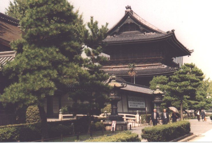 10:48 Uhr Ankunft in Kyoto. Hier kümmert sich Andreas um unsere Zugverbindung zum Flughafen an unserem letzten Reisetag. Zu Fuß geht es nun zum Hagashihiganji. Wir schauen uns die Anlage an und wandern danach durch einige Seitenstraßen in Richtung Haupteinkaufsstraße. Auf dem Weg dorthin essen wir in einem, ich möchte es nicht Lokal und auch nicht sehr kleines Restaurant nennen, am besten ich halte mich hier an Dag's Beschreibung, etwas größerem Wohnzimmer zu Mittag. Es war nicht sehr hell hier drin, das Personal war auch etwas suspekt, aber das Essen konnte man "genießen". Ein paar Häuser weiter hätten wir billiger und gemütlicher essen können. Nach unserem Einkaufsbummel geht es zu Mc Donald. Danach machen wir uns auf den Weg zur Uni, da hier wieder eine Trainingseinheit angesagt war. Unter zu Hilfename des Stadtplans und der Befragung eines Mönches gelang es uns auch die Uni von Kyoto zu finden.